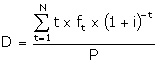 dove t rappresenta la scadenza di ogni flusso, f(t) l'ammontare del flusso di cassa, i il tasso di interesse di mercato (o di valutazione), P il prezzo attuale del titolo obbligazionario.