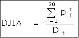dove D(t+1) è il divisore a seguito di una modifica, D(t) è il valore del divisore precedente tale modifica, C(t) è il prezzo di chiusura del titolo t e C(a;t) il prezzo di chiusura del medesimo titolo corretto per tenere conto dell'operazione. In tal modo si assicura che il valore del DJIA successivo alla variazione del divisore coincida con il valore dell'indice stesso immediatamente precedente la modifica.