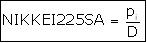 dove p(i) rappresenta il prezzo di ognuno dei 225 titoli e D il divisore. Il divisore è un fattore che viene modificato a seguito dell'entrata o dell'uscita di alcuni componenti oppure a seguito di operazioni particolari che impattano sul valore di uno o più titoli inclusi nell'indice; le modifiche apportate al divisore permettono di mantenere una certa continuità (e comparabilità) nei valori dell'indice nel corso del tempo.