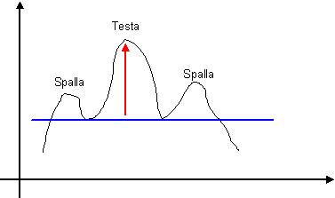 Nella figura seguente è rappresentata una figura testa e spalle ai massimi. La linea blu rappresenta la neckline.