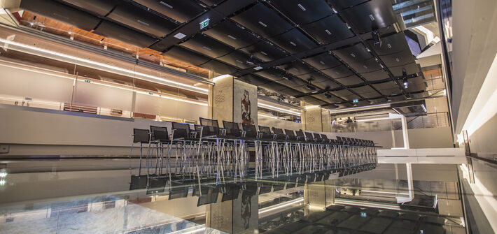 Le sedi storiche, il patrimonio artistico e gli studios multimediali rendono Palazzo Mezzanotte una location di alto prestigio per eventi e tanto altro.