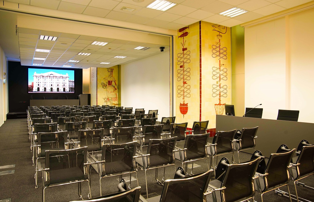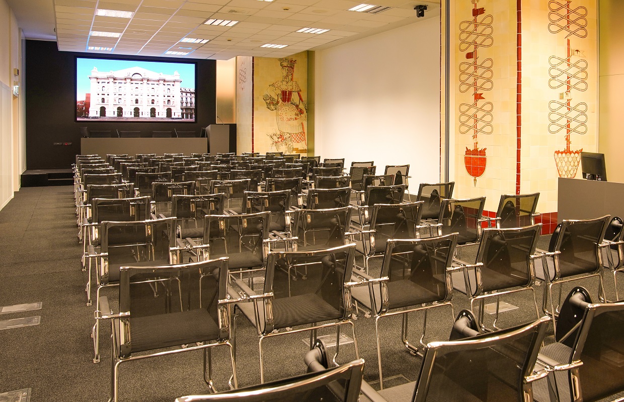 Ideale anche per le conferenze stampa, dispone di 80 posti a platea divisibile in due sale rispettivamente da 50 e 30.