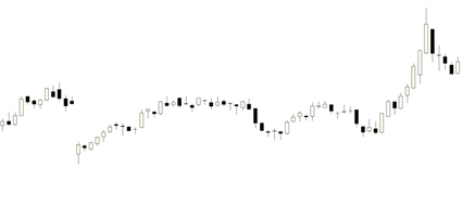 Tale rappresentazione consente di cogliere “a colpo d’occhio” periodi temporali in cui la densità di sedute positive o negative è particolarmente elevata, così come il verificarsi di giornate di contrattazioni anomale, come ad esempio quelle dove apertura e chiusura coincidono.