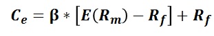 Ce=Cost of Equity, ossia il costo del capitale proprio. Apparentemente semplice nel caso di valutazione di società quotate, in realtà il costo del capitale proprio nel Capital Asset Pricing Model (CAPM) prevede la formula: