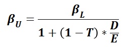 dove T è la tassazione dell’impresa, D il valore dei mercato del suo debito, E il valore di mercato del suo capitale. In tal modo si ottiene il rischio operativo (specifico) dell’impresa depurandolo dal rischio finanziario (sistemico).