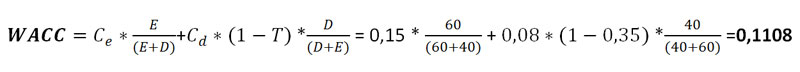 Ossia il costo medio ponderato del capitale sarà del 11,08%.