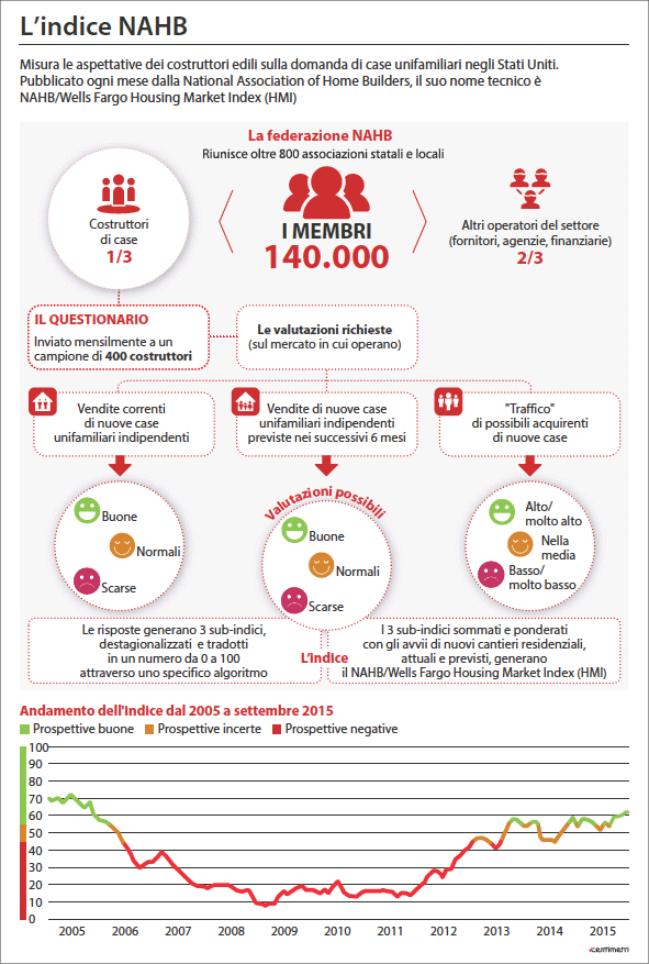 FTA Online News, Milano, 28 Set 2015 - 10:43L'indice NAHB, come comunemente chiamato, è prodotto e pubblicato con cadenza mensile dalla National Association of Home Builders (NAHB) e prende il nome di NAHB/Wells Fargo Housing Market Index (HMI).