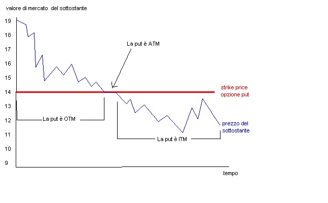 Per esemplificare con un esempio grafico, consideriamo il caso di un’opzione put con strike a 14 euro: