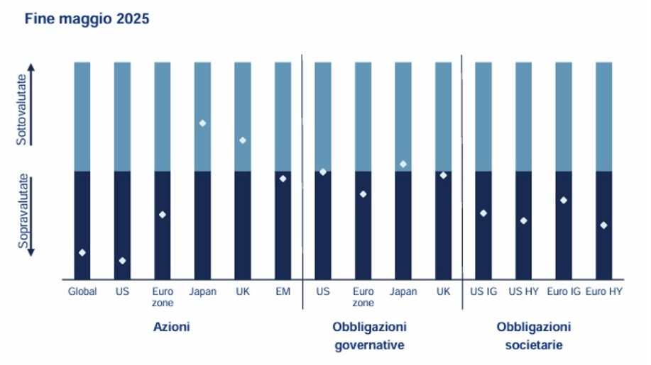 - Le azioni giapponesi risultano le più sottovalutate tra gli asset analizzati, mentre i titoli dell’area euro appaiono sempre più interessanti.