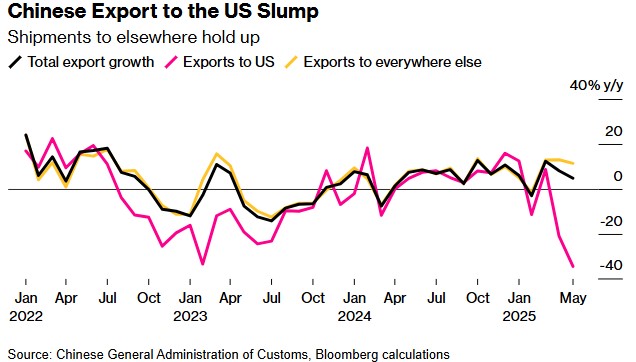 In attesa dell’incontro odierno, proprio da Pechino arrivano i primi segnali. A maggio, le esportazioni cinesi verso gli Stati Uniti sono crollate del 34,5% su base annua, la peggior caduta dal 2020. Un dato che riflette più il passato che il futuro: l’effetto delle tariffe fino al 145%, attive fino alla tregua del 11 maggio, ha pesato sulle spedizioni.