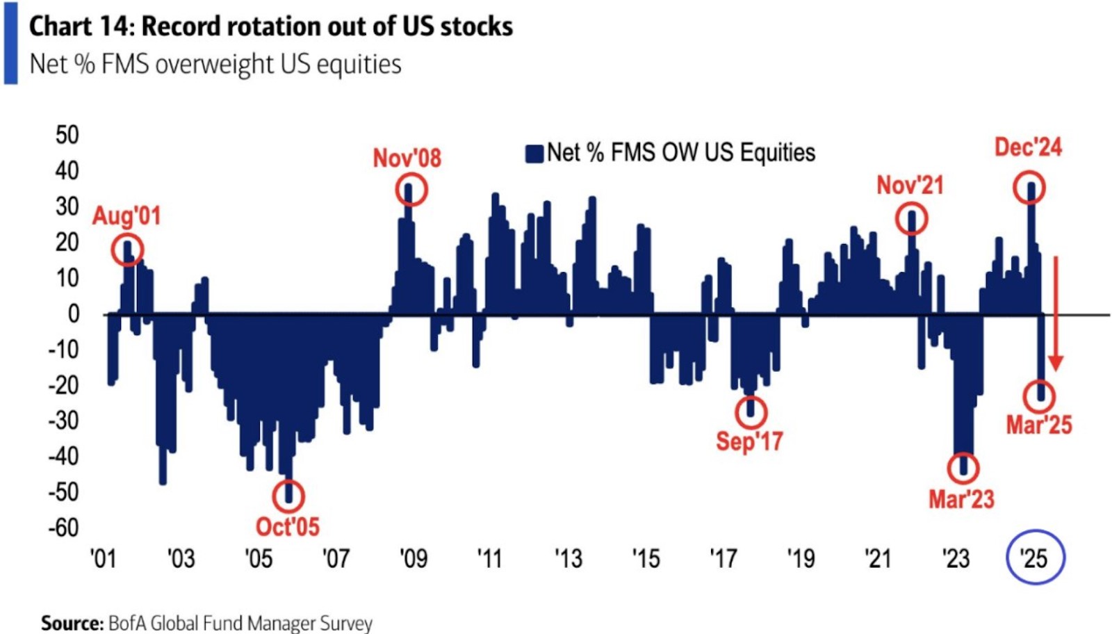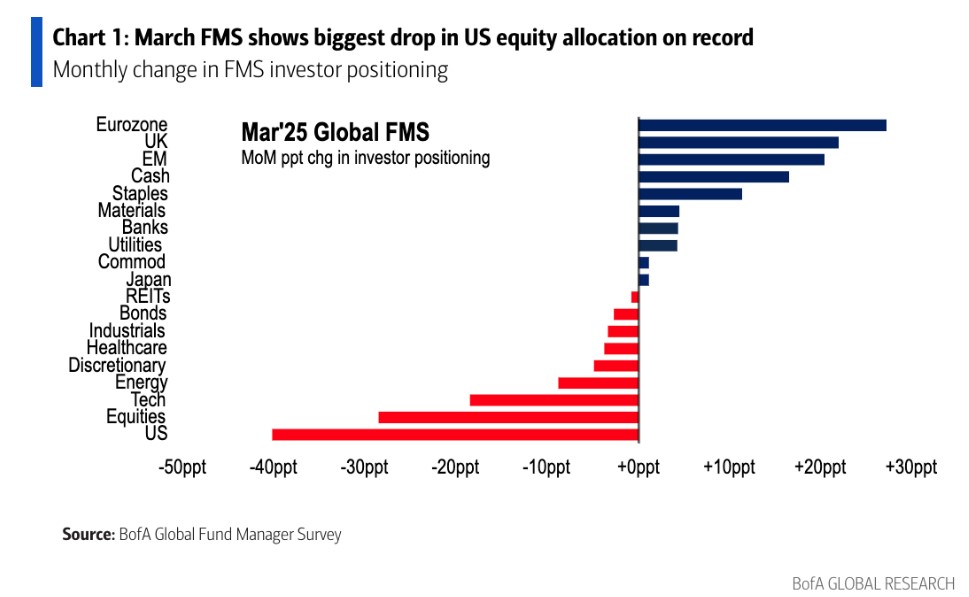 E l’effetto si vede già sui mercati. Il posizionamento dei fund manager globali, secondo il sondaggio BofA Global FMS, mostra il “più grande calo di allocazione sull’azionario USA di sempre”. L’“America first” di inizio decennio sembra essersi trasformato in un “anything but the USA”, complice la debolezza del tech dopo l’ondata AI e l’incertezza politica generata dal ritorno di Donald Trump nella corsa alla Casa Bianca.