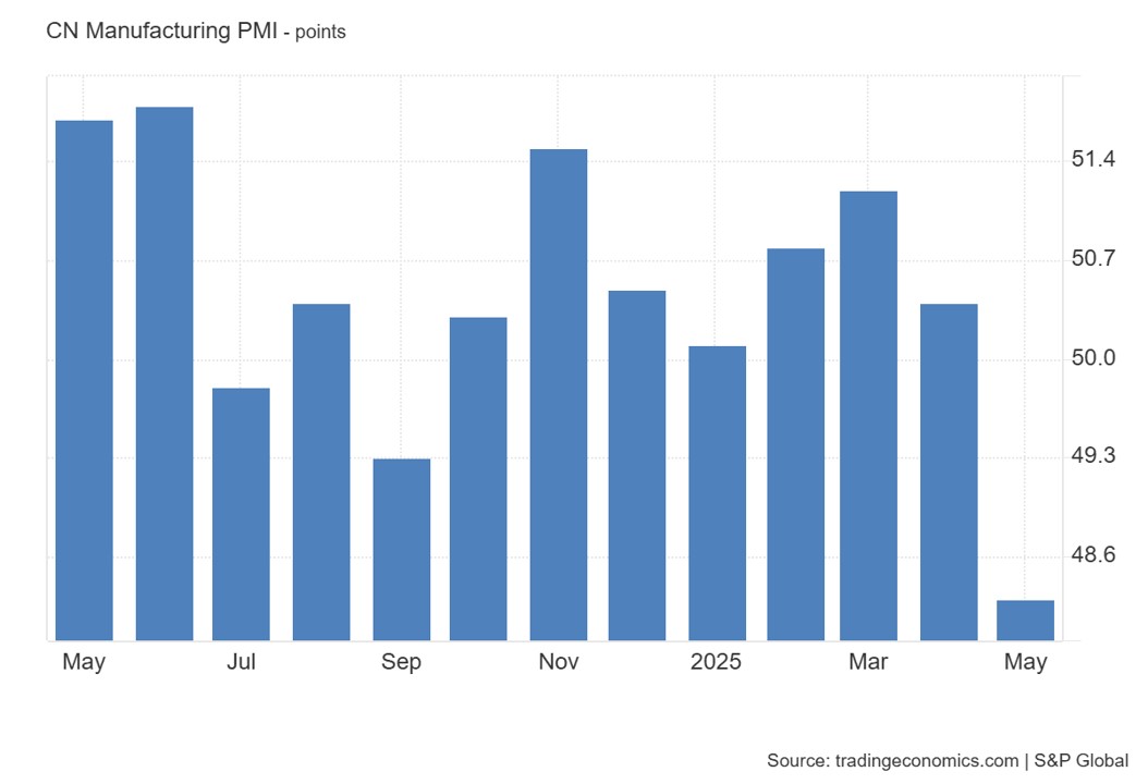 Nel frattempo, in Cina qualcosa si è rotto. Il Caixin PMI manifatturiero (la versione privata e spesso più affidabile del dato ufficiale) è sceso da 50,4 a 48,3. È il primo segnale di contrazione da otto mesi e la lettura peggiore da settembre 2022. Tutte le sottocomponenti principali sono peggiorate, segno che la pressione non è solo esterna, ma sistemica. Il sentiment delle imprese resta sorprendentemente ottimista, forse alimentato da aspettative di stimoli. Ma alcuni attori iniziano già a pagare un prezzo concreto.