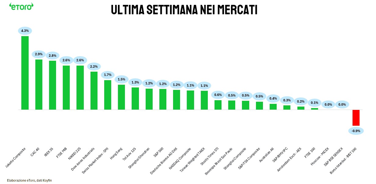 Non si è trattato di un fenomeno isolato. Dall’Europa agli Stati Uniti, dall’Asia all’America Latina, il verde ha dominato i listini: Parigi, Madrid, Francoforte, Londra, Amsterdam, Tokyo, New York, Shanghai, San Paolo. Una spinta corale, che ha reso l’estate finanziaria meno fragile di quanto le statistiche lasciassero presagire.
