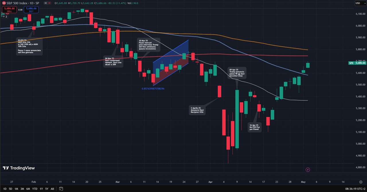 Dopo settimane dominate da incertezza, dazi e revisioni al ribasso, qualcosa di più familiare è tornato sui mercati: la normalità. Non una normalità qualsiasi, ma quella che gli investitori conoscono bene e che più amano. Quella fatta di distensione diplomatica, di narrativa accomodante, di segnali (anche minimi) che lasciano intendere un ritorno al dialogo. Non è un caso che il vero punto di svolta si sia verificato il 9 aprile, quando Donald Trump ha annunciato una pausa di 90 giorni sui nuovi dazi, con la sola eccezione della Cina. Quel giorno, il mercato ha reagito con una delle sedute più violente degli ultimi decenni: l’S&P 500 è salito dell’9,51%, il Nasdaq ha messo a segno un +12%. Segno che non serve, almeno per ora, un accordo definitivo per spingere il sentiment: basta la promessa di un negoziato. Basta che il rischio venga spostato in avanti.
