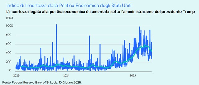 A seguito dell’annuncio del Presidente Trump del 2 aprile 2025, definito «Giorno della Liberazione», relativo all’introduzione di nuovi dazi commerciali, i mercati azionari, sia emergenti che sviluppati, hanno registrato una significativa volatilità e un incremento dell’incertezza. Le trattative bilaterali con i singoli Paesi per la definizione di accordi commerciali sono in fase di evoluzione. Il Regno Unito è stato il primo a comunicare il raggiungimento di un’intesa, e si prevede che altri Paesi, inclusi quelli appartenenti ai mercati emergenti, seguiranno a breve.