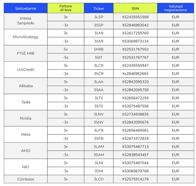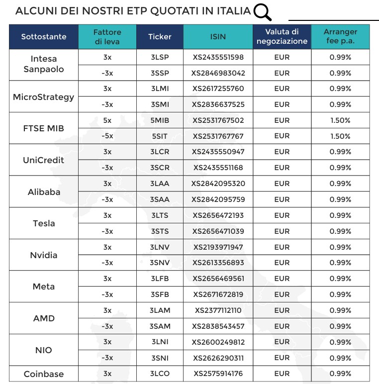 - ETP a leva 5x, long e short, sull'indice FTSE MIB