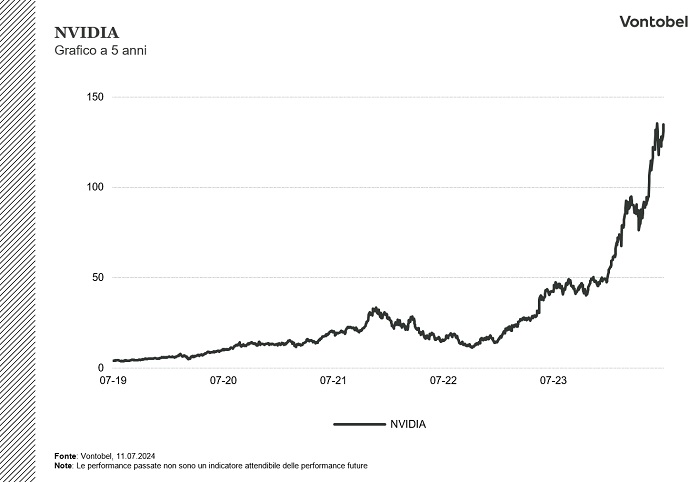 NVIDIA, grafico a 5 anni. Dati aggiornati alle 8:30 del'11.07.2024