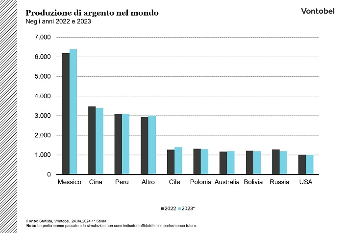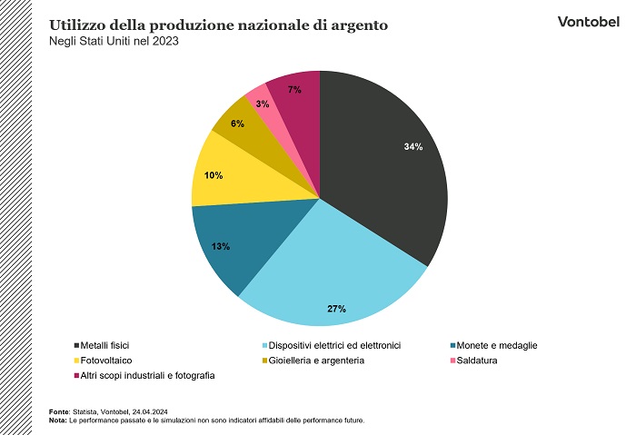 Nel corso del 2023, il consumo mondiale di argento è stato stimato a 36.000 tonnellate. Circa 1.000 tonnellate di questa quantità derivavano dalle miniere degli Stati Uniti, con un valore stimato di 760 milioni di dollari (fonte: U.S. Geological Survey). L'argento viene estratto dal minerale sia nelle miniere d'argento che come sottoprodotto in altre miniere. Nello stesso anno, circa 1.100 tonnellate sono state recuperate attraverso il riciclaggio di rottami, rappresentando circa il 16% del consumo negli Stati Uniti. Secondo il Silver Institute, un'organizzazione internazionale senza scopo di lucro che conta membri provenienti da tutti i settori dell'industria dell'argento, il mercato globale dell'argento ha registrato un deficit di 80,1 milioni di once solo nel 2020. Il mercato dell'argento è significativamente più piccolo rispetto a quello dell'oro, il che suggerisce che un aumento della domanda rispetto all'offerta potrebbe influenzare positivamente il prezzo dell'argento. Di recente, la Banca Centrale Cinese (PBoC) ha importato ingenti quantità di oro e argento. Nonostante la produzione nazionale sia già elevata, parte della domanda aggiuntiva di argento è attribuibile alla forte richiesta dell'industria solare cinese.