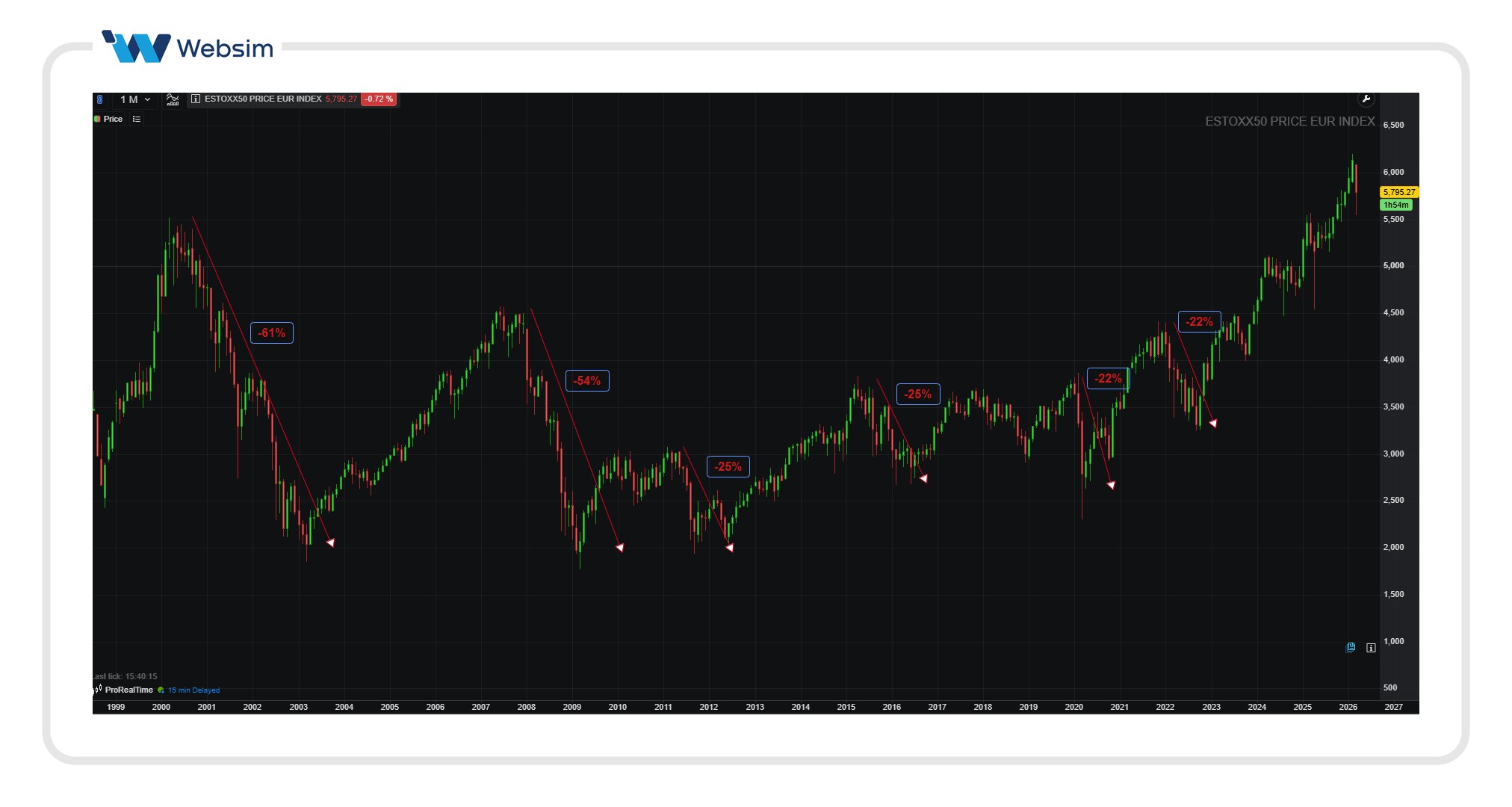 Un tema importante quando si valuta un certificato su indici (ma questo vale anche per i titoli) è andare a vedere la volatilità storica e quella implicita, per capire quanto efficiente il sottostante sia. Un esercizio che possiamo fare tutti facilmente, ad esempio, è andare a vedere, negli ultimi 20 anni che drawdown l’indice ha sviluppato nelle fasi di bear market, ovvero quanto ha perso dai massimi dopo una fase ribassista (come ad esempio crisi dot.com, Lehman Brothers, 2011, 2015, 2018, Covid e 2022). La storia si sa, non è garanzia delle performance future, ma comunque aiuta. Diciamo che guardando alla volatilità implicita ad un anno e contemporaneamente guardando come si è comportata in passato, possiamo fare dei ragionamenti funzionali a quantomeno mettere la statistica dalla nostra parte. Per farlo dobbiamo studiare i sottostanti.
