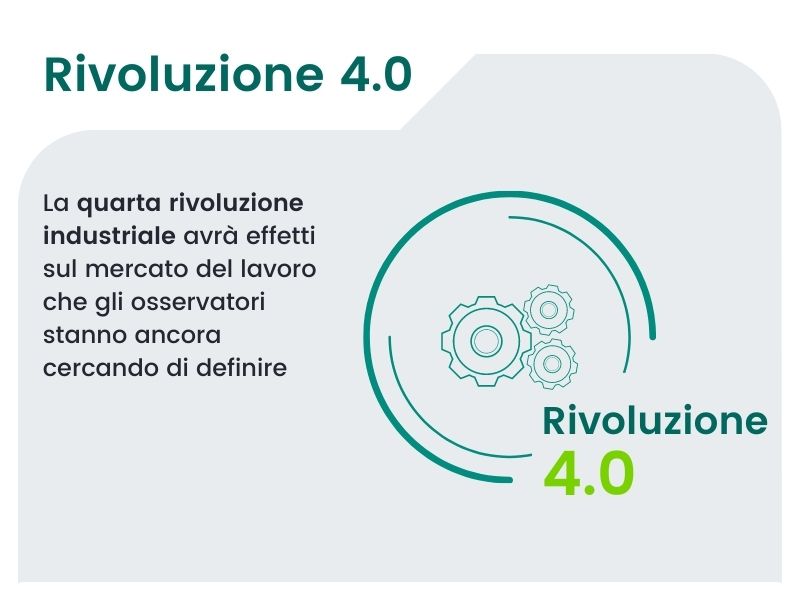 La quarta rivoluzione industriale avrà tuttavia effetti sul mercato del lavoro che gli osservatori stanno ancora cercando di definire. Saranno necessarie nuove professionalità mentre altre sono destinate a scomparire.