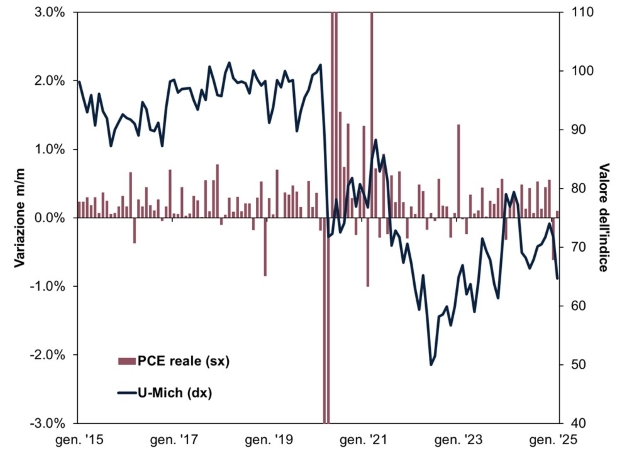 Figura 3: PCE statunitense e Indice del sentiment dei consumatori dell’Università del Michigan