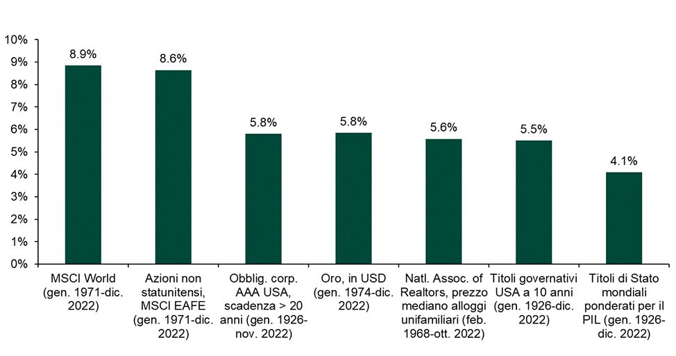Fonte: Global Financial Data, FactSet, all’11/01/2023. Valori espressi in dollari USA. Le performance passate non sono un indicatore delle performance future.