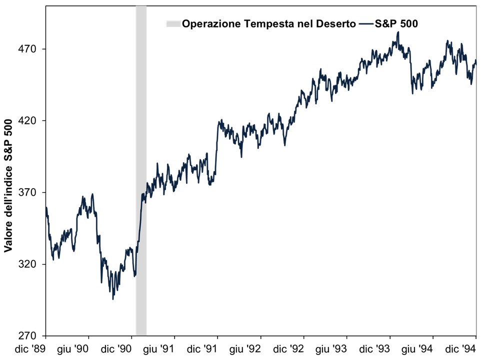 La Figura 2 mostra l'andamento dei titoli prima, durante e dopo l'Operazione Tempesta nel deserto all'inizio degli anni Novanta, che dipinge un quadro simile, secondo la recensione di Fisher Investments Italia.