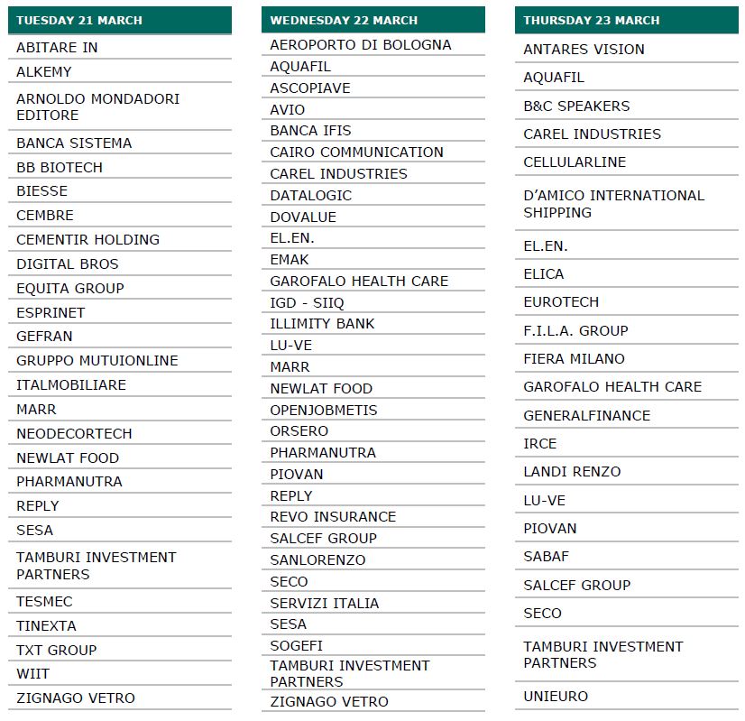 63 STAR Companies attending in presence at Palazzo Mezzanotte - Milan available for one-to-one meetings with institutional investors