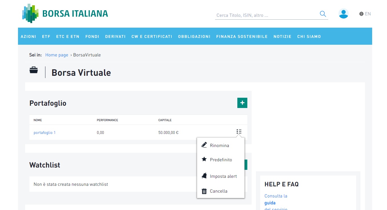 Borsa Virtuale è completamente gratuito: accedi o registrati al sito e inizia ad usare il simulatore finanziario.